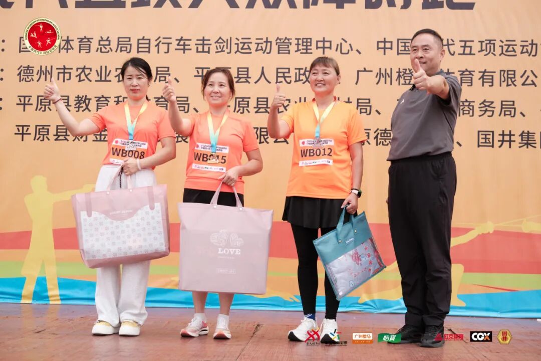 本次活动由国家体育总局自行车击剑运动管理中心、中国现代五项运动协会主办,德州市农业农村局、平原县人民政府、广州橙马体育有限公司承办,平原县教育和体育局、平原县农业农村局、平原县商务局、平原县文旅局、平原县财金投资发展集团有限公司、平原德百广场、国井集团协办,活动旨在推动全民健身与丰收欢庆深度融合,吸引了近500名选手踊跃参与。在这场体育、文化与家庭乐趣于一体的盛会中,选手们全力挑战、尽情释放,展现出朝气蓬勃的运动风采。